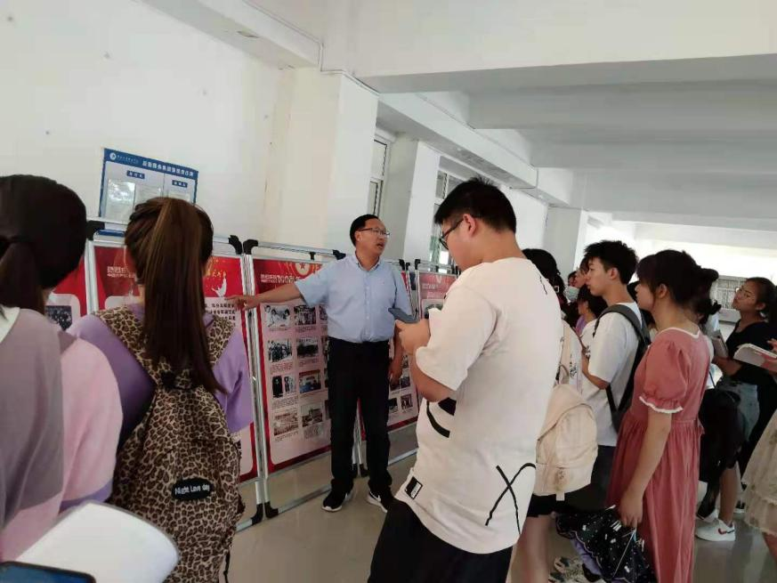 省核心价值观培育与红色基因传承协同创新研究中心首席专家万生更教授、马克思主义学院丁太魁副教授为学生介绍展板内容,并用简短生动的语言向学生介绍了中国共产党的百年历史。