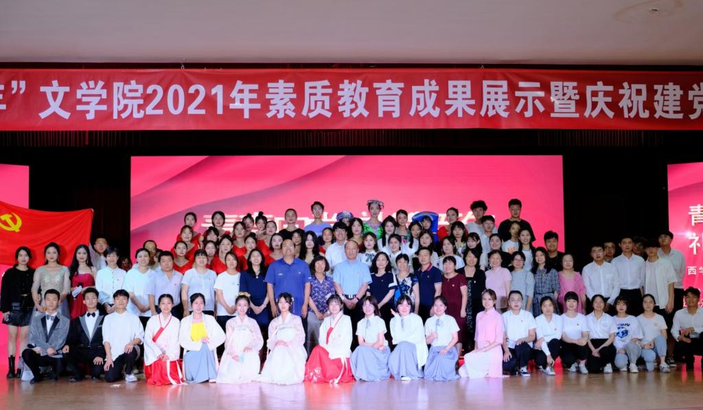 为庆祝中国共产党成立100周年,激发广大师生的历史责任感与使命感,充分展示我院学子的综合素养和青春风采,6月23日晚,文学院“青春向党 礼赞百年”2021年素质教育成果展示暨庆祝建党100周年文艺晚会在大学生活动中心隆重举行。校党委副书记、纪委书记王凯出席活动并与文学院师生400余人一起观看了演出,回顾党的光辉历程,讴歌党的丰功伟绩。