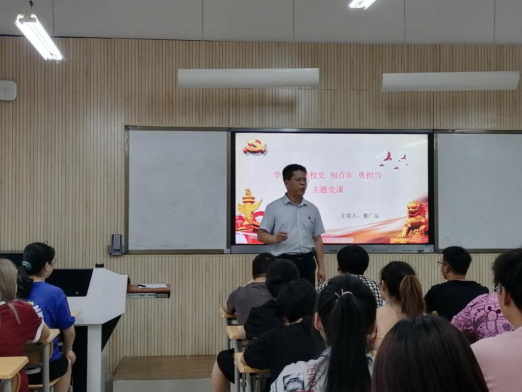 参观结束后,学院党总支书记童广运在博文楼B203教室,为全体学生讲授了“学党史 铭校史 知百年 勇担当”的主题党课。童广运书记从党史学习的重大意义及发展脉络、从百年党史和校史中汲取奋进力量、牢记党员身份勇于担当使命三个方面做了全面深刻的阐述。