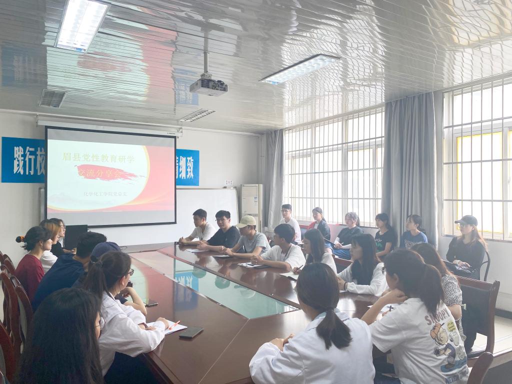 为更进一步引导广大学生学好党史,将党史学习教育融入学习生活中,加强学生党员党性教育,扩大申搏党性教育研学班教育效果。5月25日下午,化学化工学院在积学楼A204会议室开展眉县党性教育交流分享会,赴眉县研学党员代表、各班级骨干班委代表以及积极分子代表参加了分享会,会议由学生党支部第一书记陈晓璐主持。