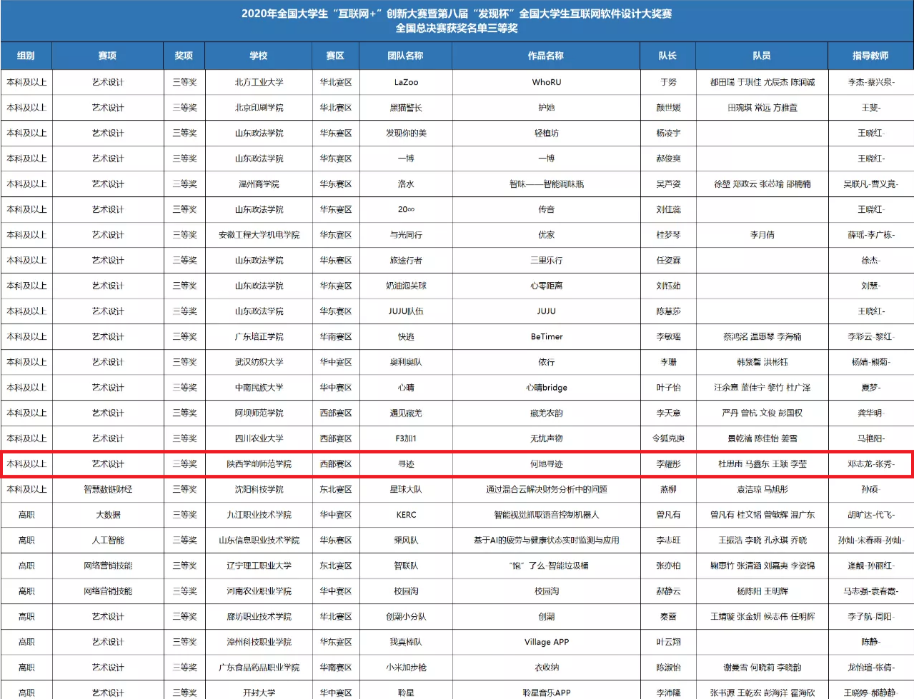 近日,全国大学生“互联网+”创新大赛暨第八届“发现杯”全国大学生互联网软件设计大奖赛落下帷幕。申搏信息工程学院学生李耀彤、杜思雨、马鑫东、王颖、李莹团队设计的《何地寻迹》(指导教师:邓志龙、张秀)在学院领导的大力支持,教师的悉心指导下,经过激烈比拼,以西部赛区一等奖的好成绩进入全国总决赛,最终获得全国总决赛三等奖,同时在147组参赛作品中获得唯一的最具人气奖。