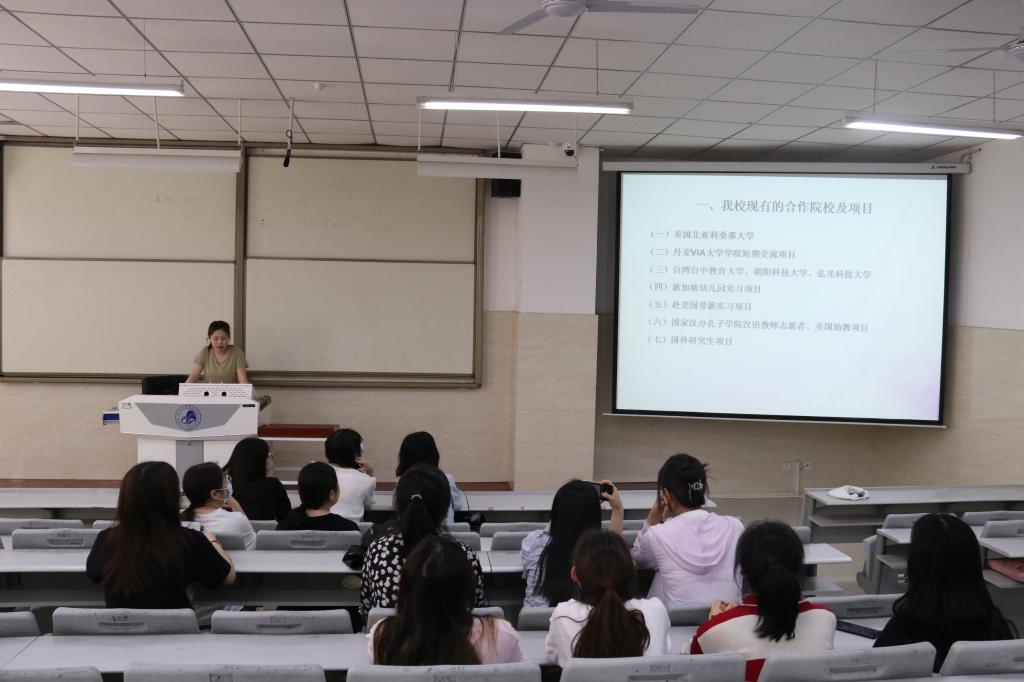 国际处工作人员首先简要介绍了申搏近年学前教育专业毕业生赴新就业的基本情况,并指出此次宣讲会主要针对的是新加坡人民行动党社区基金(PCF)公立幼儿园就业项目。