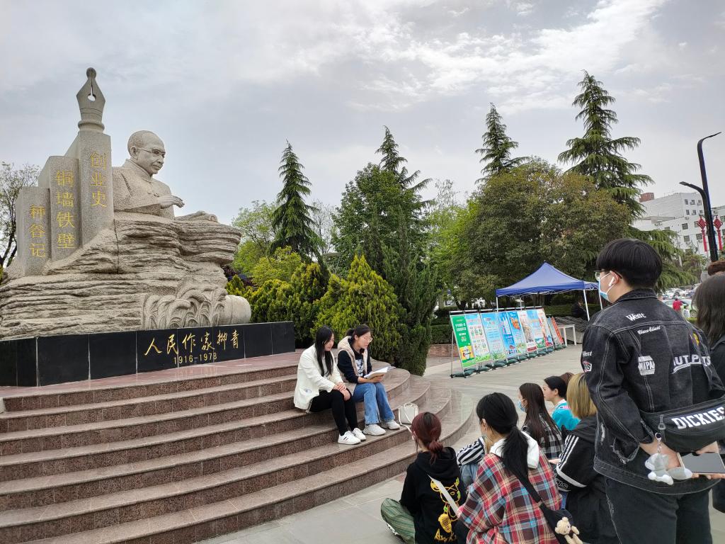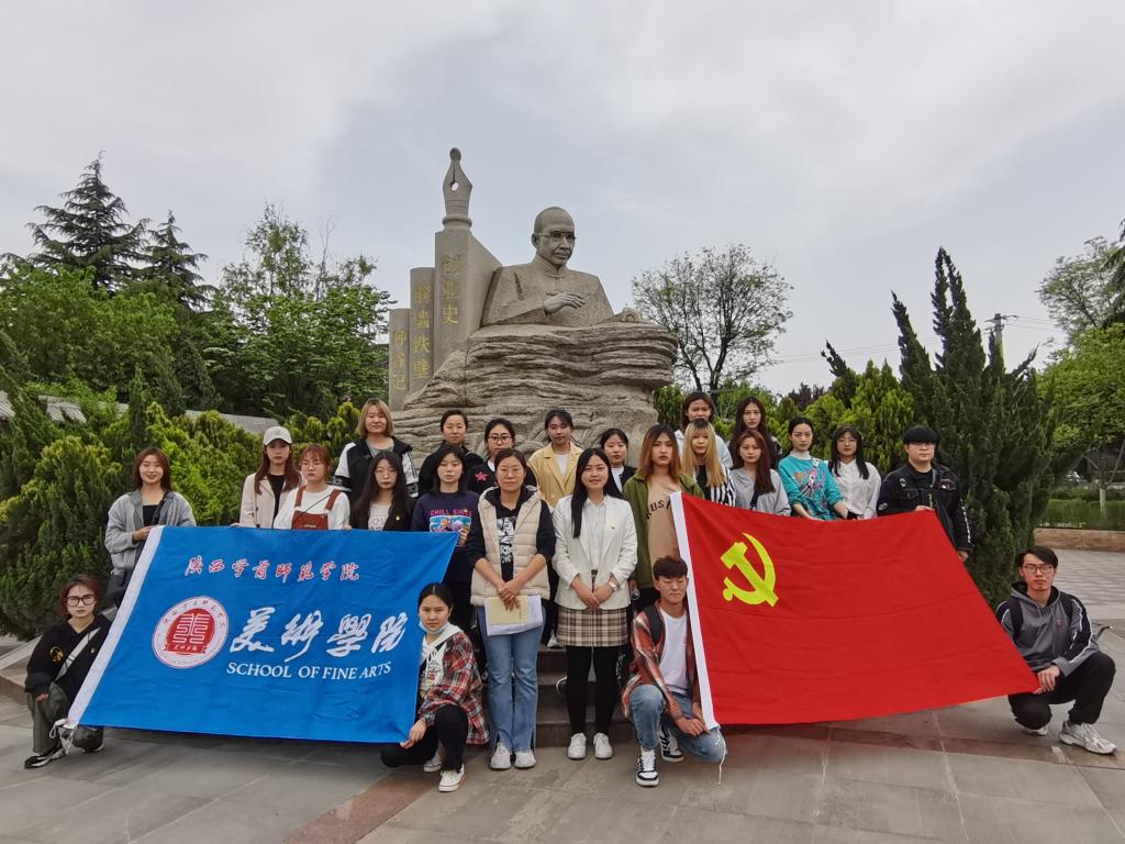 4月16日下午美术学院学生党支部在柳青文化广场开展了第一期“行走的党课”。学生党员和积极分子参观了柳青文学馆,了解了作家柳青的生平及创作历程,学生党员代表为大家介绍了柳青先生的代表作品《创业史》、《种谷记》、《铜墙铁壁》的内容。大家深刻体会到他“深入生活、扎根人民”的家国情怀。随后,美术学院学生第二党支部书记郭园老师作了题为《学习柳青精神,传承红色基因》的党课党课讲述了柳青先生的生平事迹和他作为一名共产党员深入生活、扎根人民、无私奉献的精神境界。美术学院学生第一党支部书记蔡艳君老师领学了《论中国共产党历史》中《实现中华民族伟大复兴是中华民族近代以来最伟大的梦想》的内容。最后同学们各抒己见,谈论自己的心得与体会纷纷表示:“此次党课让我们实地学习了解了柳青先生的生平事迹和经典作品,现场体验感悟柳青精神,我们应该踏实学习,知史爱党,自觉把人生追求同国家和民族的前途命运联系起来,在维护和实现国家与人民利益的过程创造个人的辉煌人生”。