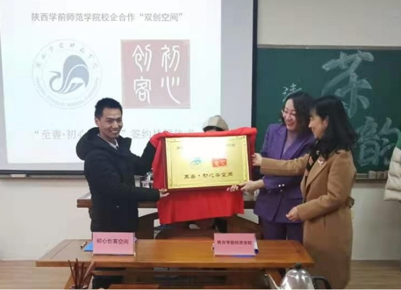 为适应新时代高等教育发展要求,推进申搏创新创业教育,探索校—地—企深度合作,深化专业内涵建设,提升人才培养质量,历史文化与旅游学院于2021年1月6日上午,在申搏茶文化实训室与西安市初心创客空间举行了校企合作双创空间——“至善•初心茶空间”签约挂牌仪式。