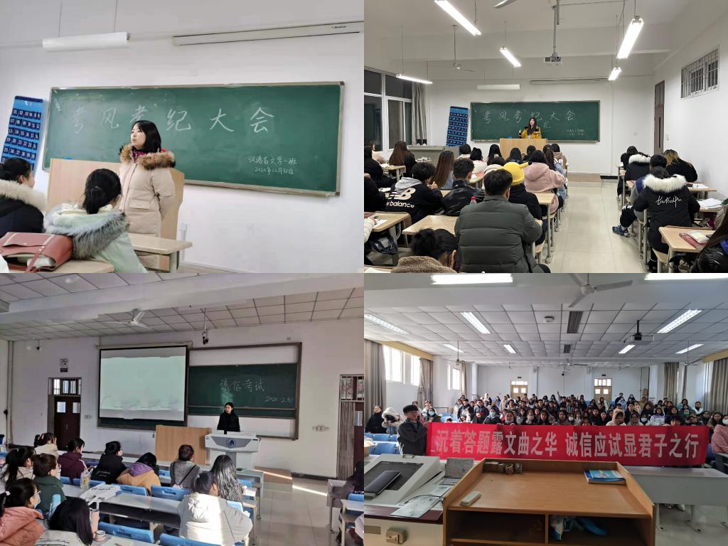 为进一步严肃考风考纪,构建和谐文明校园,在期末考试即将到来之际,文学院开展诚信考试主题教育活动,引导学生端正考风,诚信考试。