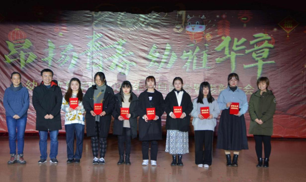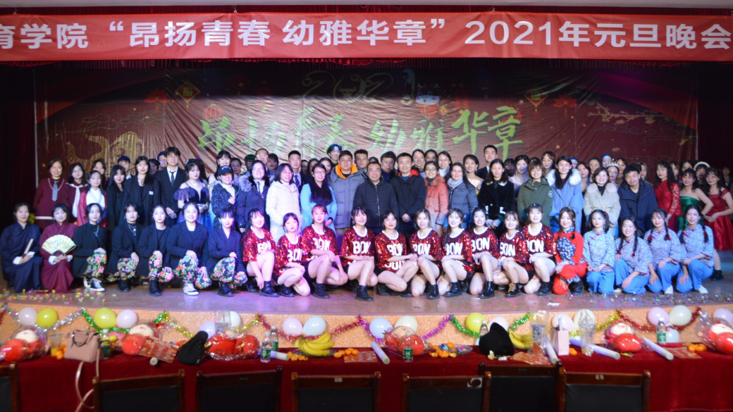 2020年12月18日,幼儿教育学院“昂扬青春 幼雅华章”2021年元旦晚会暨表彰大会在稻香楼大学生活动中心举行,学院党政领导、教师代表、辅导员与各年级学生欢聚一堂,共同庆祝和迎接即将到来的2021年。