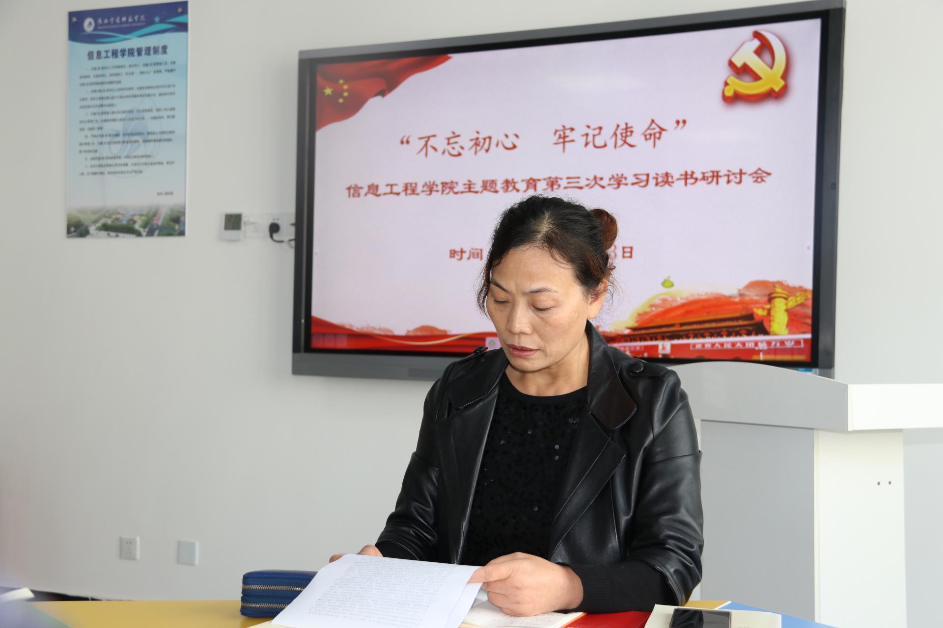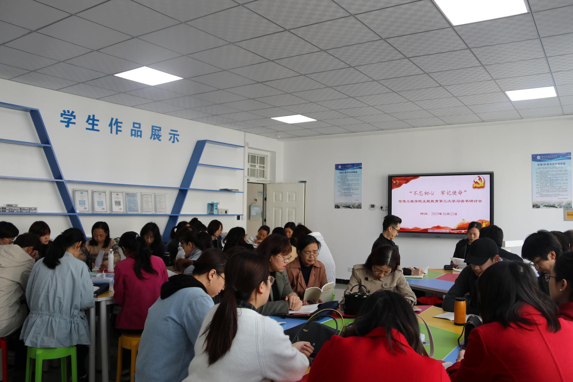 为进一步深入开展 “不忘初心、牢记使命”主题教育学习,确保主题教育工作得到持续推进,根据学校《关于进一步做好申搏“不忘初心、牢记使命” 主题教育有关工作的通知》要求,10月23日下午,信息工程学院党总支在2教A404召开了“不忘初心、牢记使命”主题教育第三次学习读书研讨会,全体教工参加了会议,会议由党总支书记薛晓娟主持。