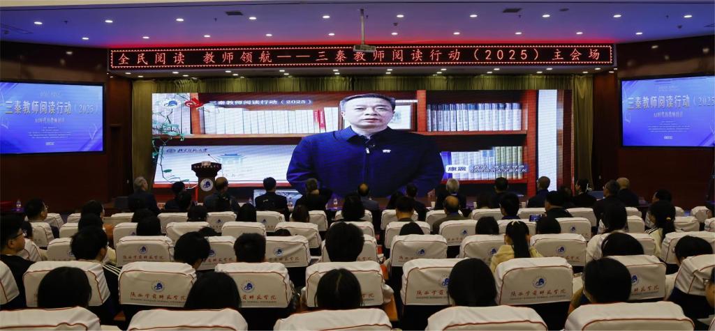 4月12日,以“AI时代的教师阅读”为主题的三秦教师阅读行动(2025)活动在申搏图书馆报告厅拉开帷幕。本次活动由申搏与陕西教育报刊社主办,申搏人文学院、党委学工部、学科建设与科研处、教育培训学院、图书馆承办,陕西省中小学幼儿园教师发展中心协办,中国高等教育学会语文教育专业委员会、陕西省教育科学研究院、陕西省基础教育语文教学指导委员会提供学术指导。相关领域专家学者、基础教育一线教师、高校师范生代表及线上观众近20万人参加活动。