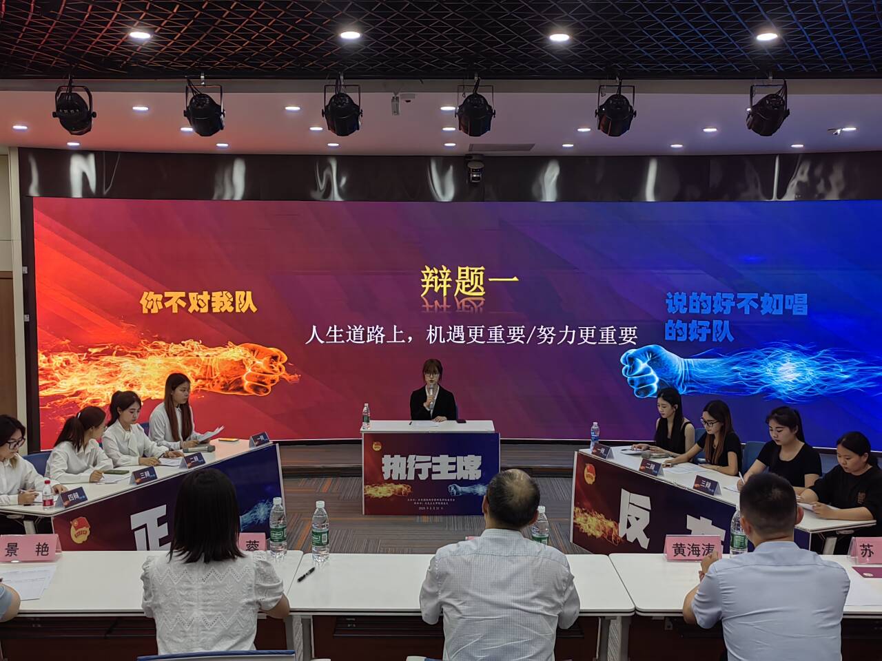 总决赛四场辩论聚焦“人生道路上机遇/努力更重要”“学历贬值环境下是否继续向上卷”“温饱是否为谈道德的必要条件”“大学生就业专业不对口是否为教育资源浪费”等议题。参赛队伍围绕核心论点展开激烈交锋,结合理论逻辑与现实案例,深入探讨成长路径、伦理哲学、教育实践等热点问题。经综合评审,新青年求索思辩社“跟着党走队”获冠军,人文学院“言之有理队”获亚军,音乐学院“说的好不如唱的好队”获季军,教育科学学院“你不对我队”与马克思主义学院“想你一辩又一辩队”获优秀团体奖,新青年求索思辩社惠梓怡获“最佳辩手”。