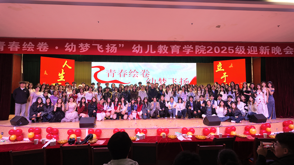 灯光璀璨映初心,歌舞飞扬启新程。2025年11月27日晚,幼儿教育学院“青春绘卷·幼梦飞扬”2025级迎新晚会在大学生活动中心举行。700余名师生欢聚一堂,共同见证这场融合专业风采与青春活力的视听盛宴。副校长王彬武参加并致辞。