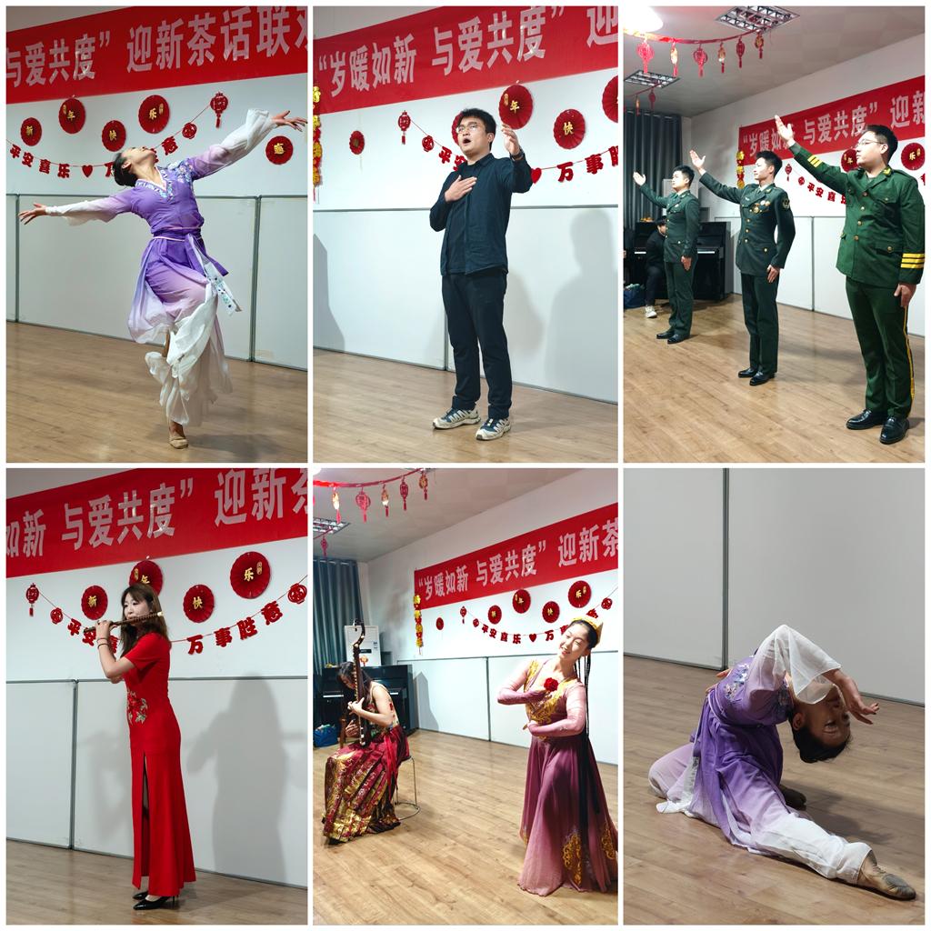 茶话联欢会现场文艺表演环节精彩纷呈。音乐学院退休教师刘浩的独唱《灯火里的中国》,深情的歌声勾勒出祖国繁荣图景,瞬间温暖全场;退休教师霍雪芹的快板《养生保健人常寿》节奏明快、干货满满,将健康知识融入趣味表演;郭晓华等退休职工的女声小合唱《红莓花儿开》韵味悠长,饱含岁月沉淀的温情;老教授刘荃信的二胡独奏《红歌联奏》唤起在场老同志深深的红色记忆。学生志愿者带来的独舞《易安醉》融青春活力与古典韵味于一体,灵动舞姿赢得阵阵掌声;笛子独奏《牧民新歌》尽显民族器乐魅力;独唱《天边》歌声悠远传递美好憧憬;集体配乐朗诵《大好河山,寸土不让》凭借军人特有的刚毅气质与饱满情感,声情并茂抒发爱国情怀,深深打动现场观众;琵琶独奏《送我一支玫瑰花》尽显异域风情;老年合唱团压轴演绎的《珊瑚颂》将现场气氛推向高潮,“最美不过夕阳红,温馨又从容;夕阳是晚开的花,夕阳是陈年的酒……”这歌声,是岁月沉淀的智慧,是历经风雨后的从容,更是老一辈们乐观向上、热爱生活的生动写照。联欢会在熟悉的《夕阳红》歌声中落下帷幕。